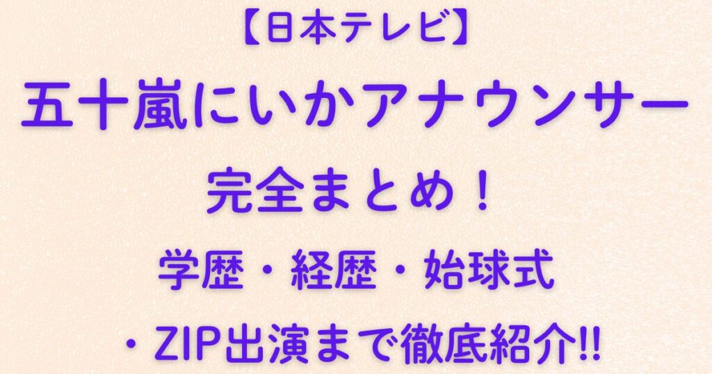 【日本テレビ】五十嵐にいかアナウンサー完全まとめ!学歴・経歴・始球式・ZIP出演まで徹底紹介!!2025年、日本テレビに新たな風を吹き込む注目の新人アナウンサー、五十嵐にいか(いがらし にいか)さん。 早稲田大学出身で、学生時代から数々のアナウンスコンテストで受賞した“実力派”です。 高校では放送部全国大会で最優秀賞、大学では「ZIP!静岡Wea...