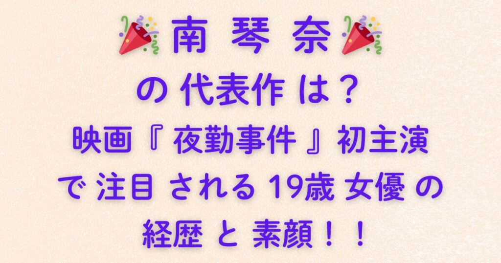 🎉 南琴奈 🎉 の代表作は?映画『夜勤事件』初主演で注目される19歳女優の経歴と素顔!!