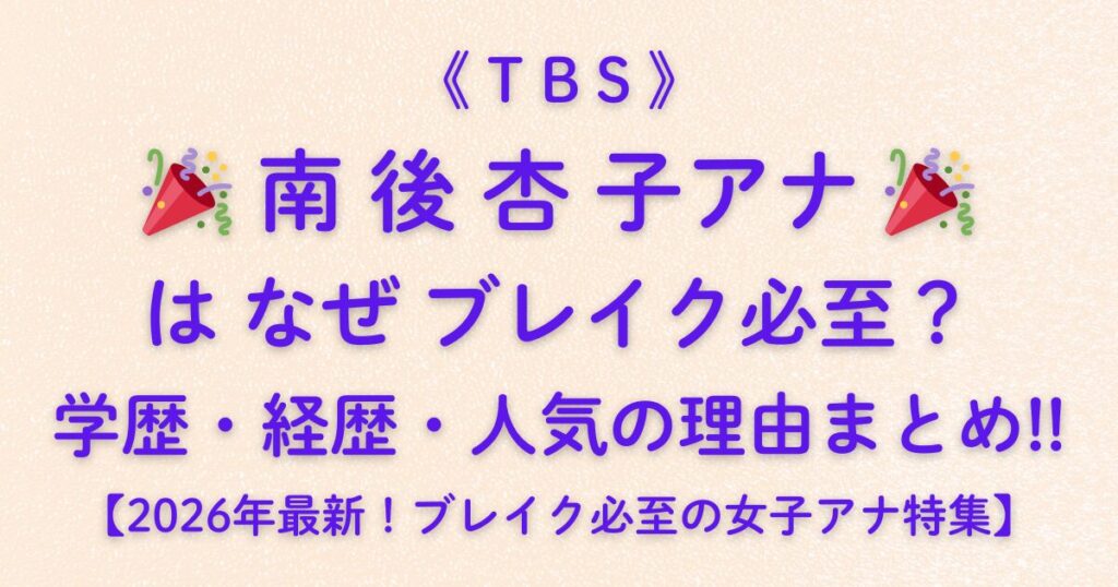 《TBS》🎉 南後杏子アナ 🎉 はなぜブレイク必至?学歴・経歴・人気の理由まとめ!!【2026年最新!ブレイク必至の女子アナ特集】