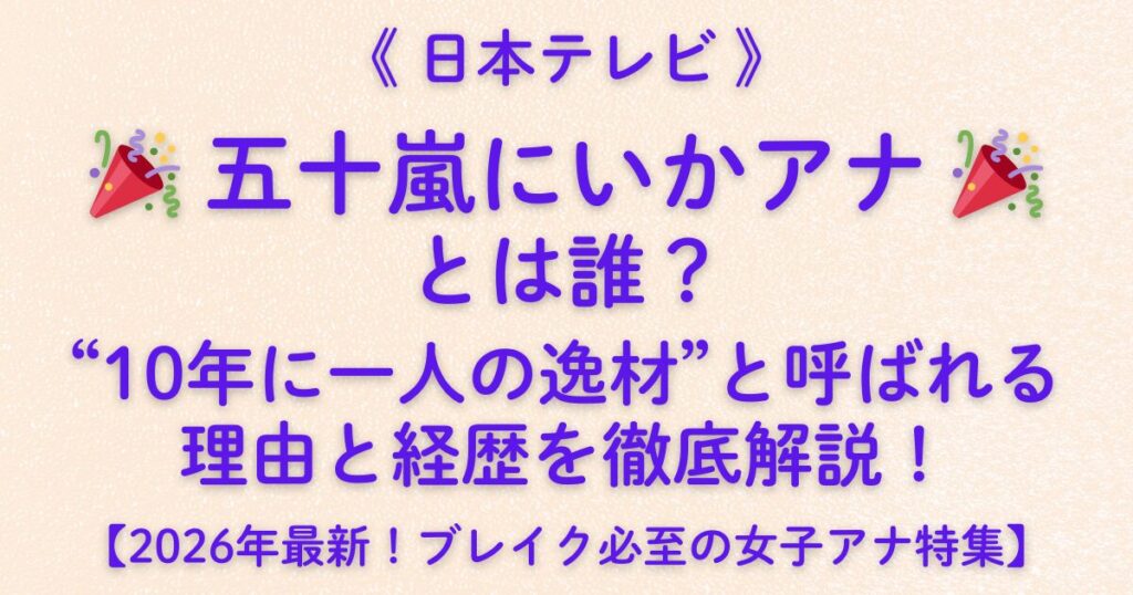 《日本テレビ》🎉 五十嵐にいかアナ 🎉 とは誰?“10年に一人の逸材”と呼ばれる理由と経歴を徹底解説!【2026年最新!ブレイク必至の女子アナ特集】