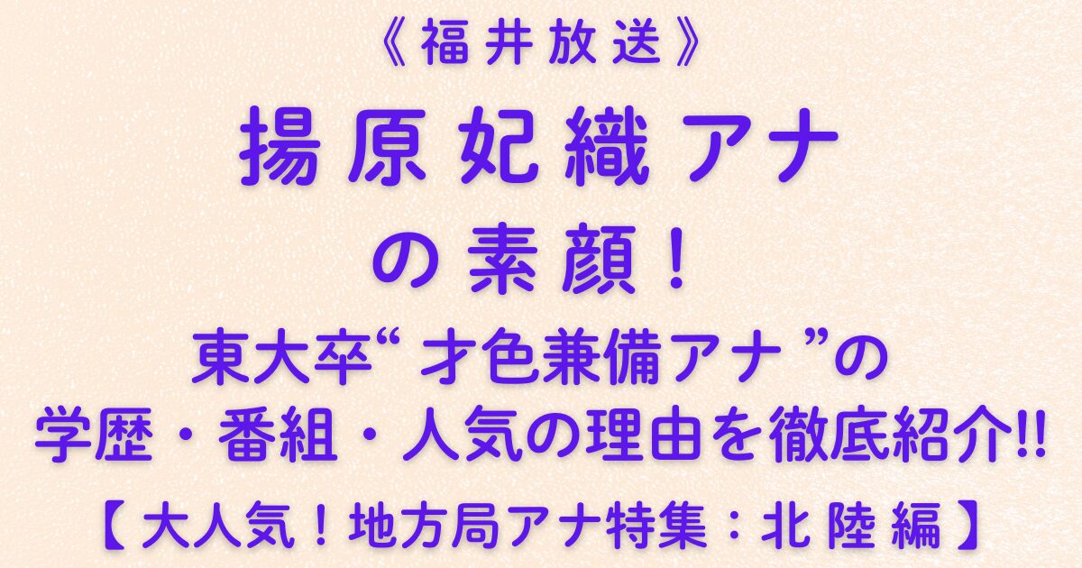 揚原妃織アナは、地元・福井を愛し、東大卒という知性と笑顔あふれる親しみやすさで、多くのファンに支持される人気アナウンサーです。