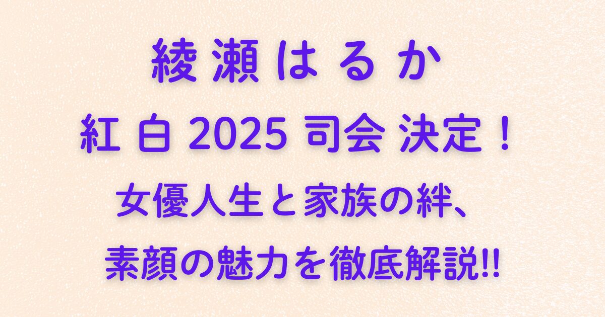 綾瀬はるか 紅白2025司会決定!女優人生と家族の絆、素顔の魅力を徹底解説!!