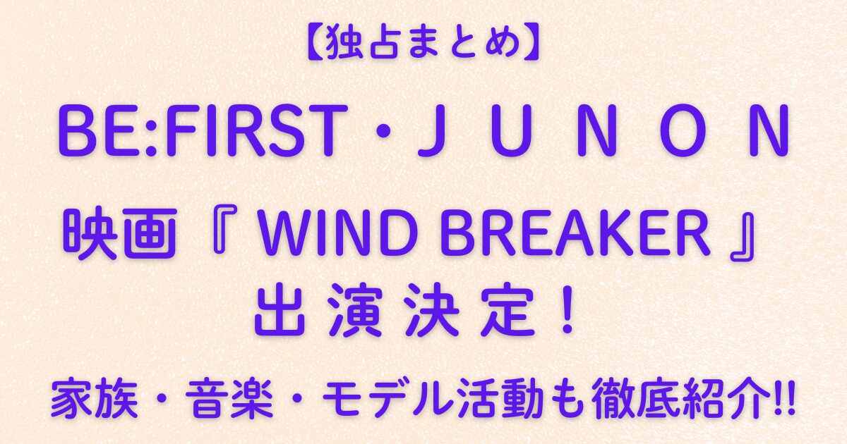 【独占まとめ】BE:FIRST・JUNON、映画『WIND BREAKER』出演決定!家族・音楽・モデル活動も徹底紹介!!