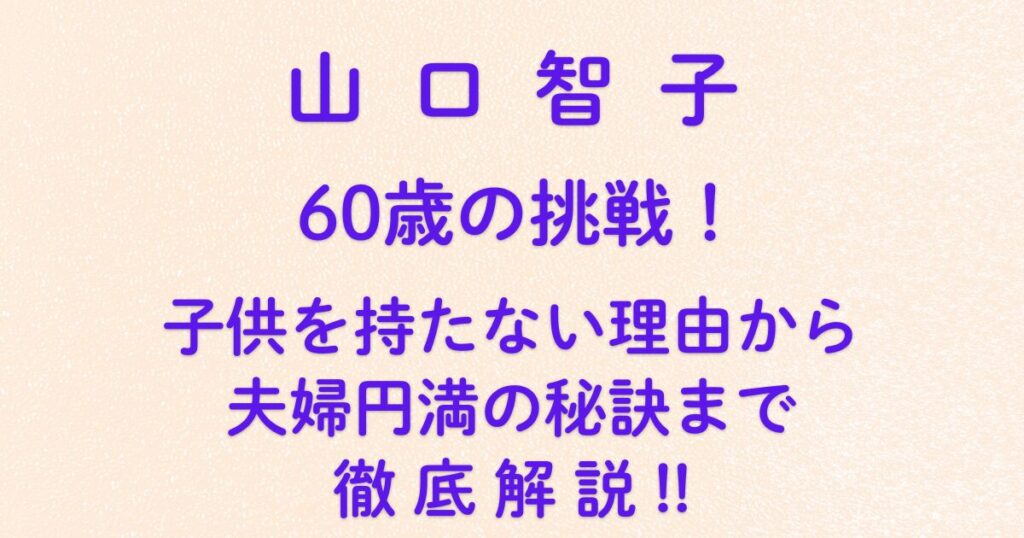 山口智子 60歳の挑戦!子供を持たない理由から夫婦円満の秘訣まで徹底解説!!