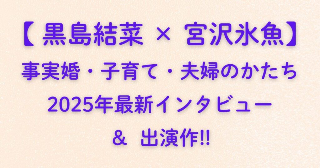 【黒島結菜×宮沢氷魚】事実婚・子育て・夫婦のかたち|2025年最新インタビュー&出演作!!