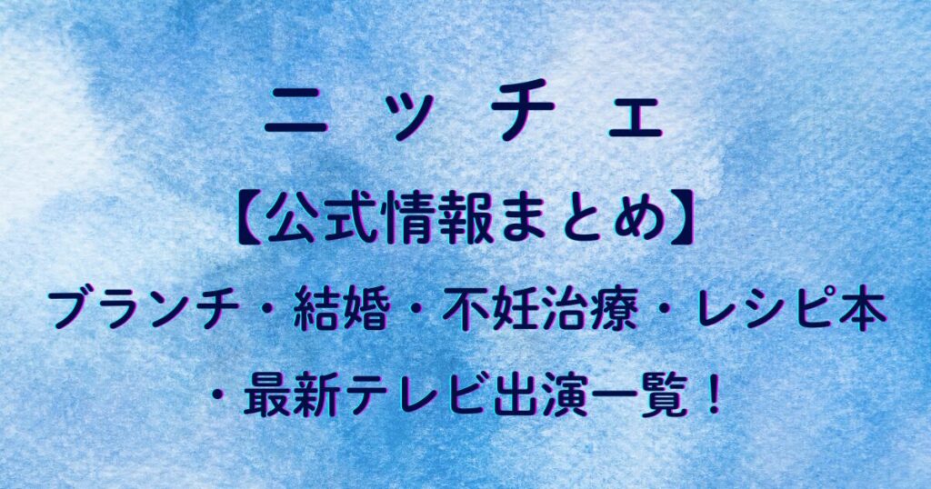 ニッチェ【公式情報まとめ】|ブランチ・結婚・不妊治療・レシピ本・最新テレビ出演一覧!