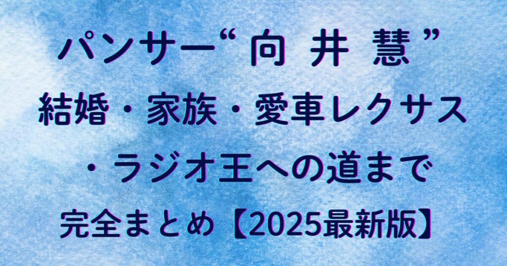 🟦パンサー向井慧|結婚・家族・愛車レクサス・ラジオ王への道まで完全まとめ【2025最新版】