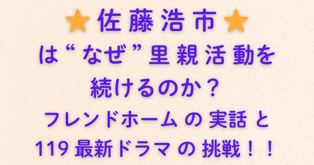 ⭐佐藤浩市⭐はなぜ里親活動を続けるのか?フレンドホームの実話と119最新ドラマの挑戦!!