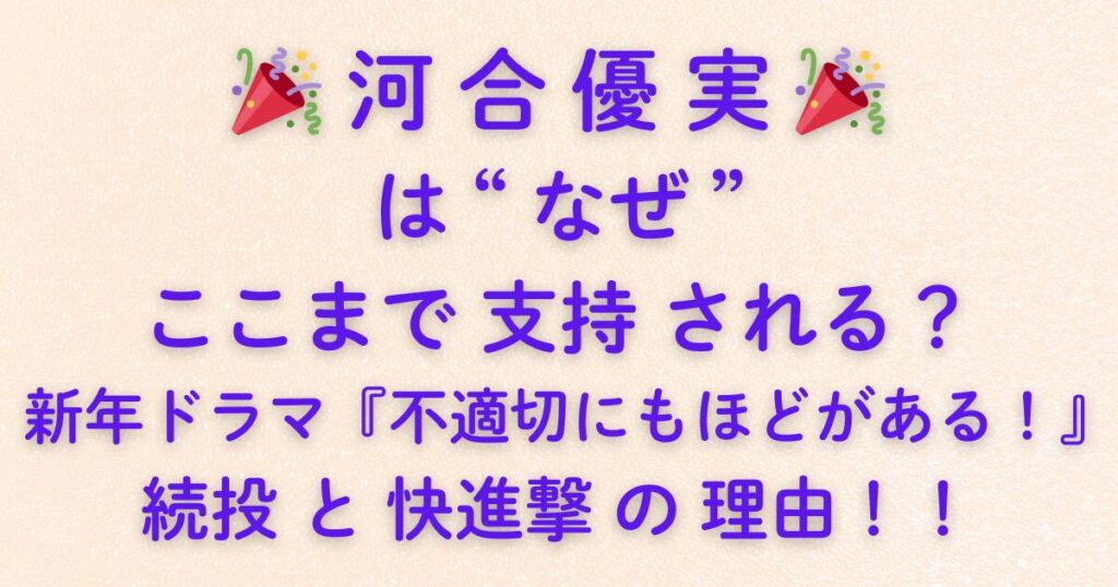 🎉河合優実🎉は“なぜ”ここまで支持される?新年ドラマ『不適切にもほどがある!』続投と快進撃の理由!!