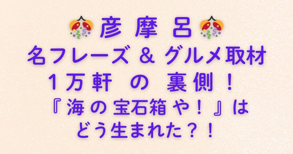 🎊彦摩呂🎊の名フレーズ&グルメ取材1万軒の裏側!『海の宝石箱や!』はどう生まれた?!