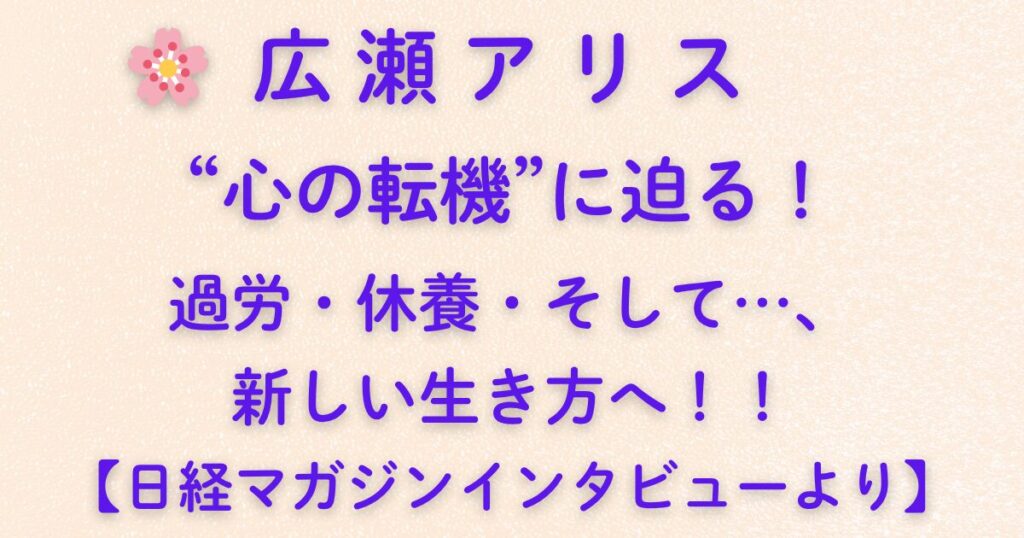 広瀬アリスの“心の転機”に迫る!過労・休養・そして新しい生き方へ!!【日経マガジンインタビューより】
