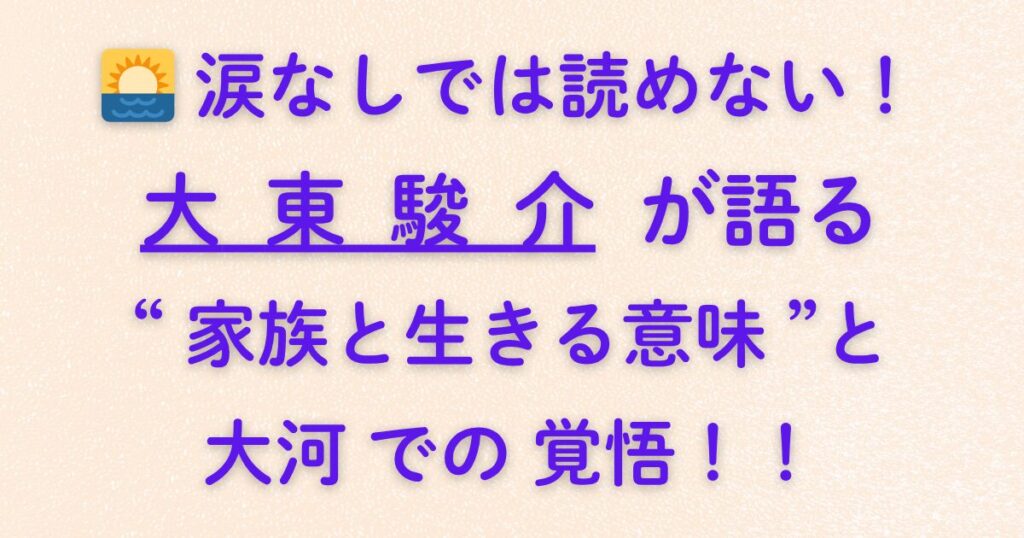 🌅涙なしでは読めない!大東駿介が語る“家族と生きる意味”と大河での覚悟!!