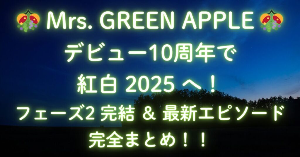 🎊 Mrs. GREEN APPLE 🎊 デビュー10周年で紅白2025へ!フェーズ2完結&最新エピソード完全まとめ!!