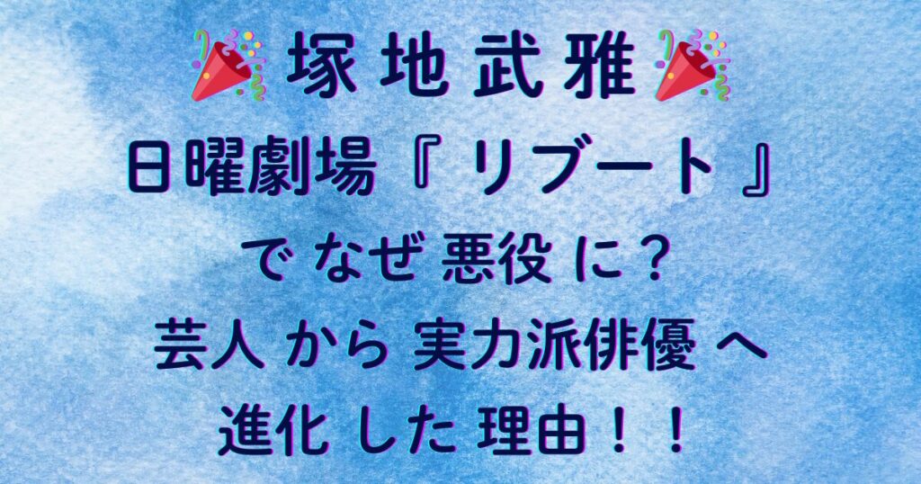 🎉 塚地武雅 🎉 はなぜ日曜劇場『リブート』で悪役に?芸人から実力派俳優へ進化した理由!!