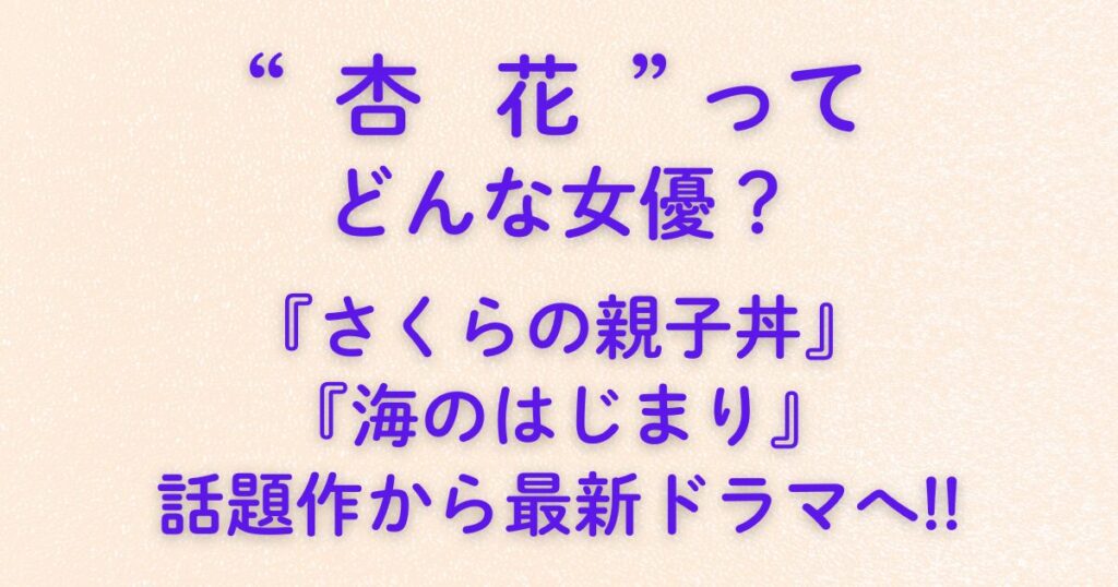 杏花ってどんな女優?『さくらの親子丼』『海のはじまり』話題作から最新ドラマへ!!