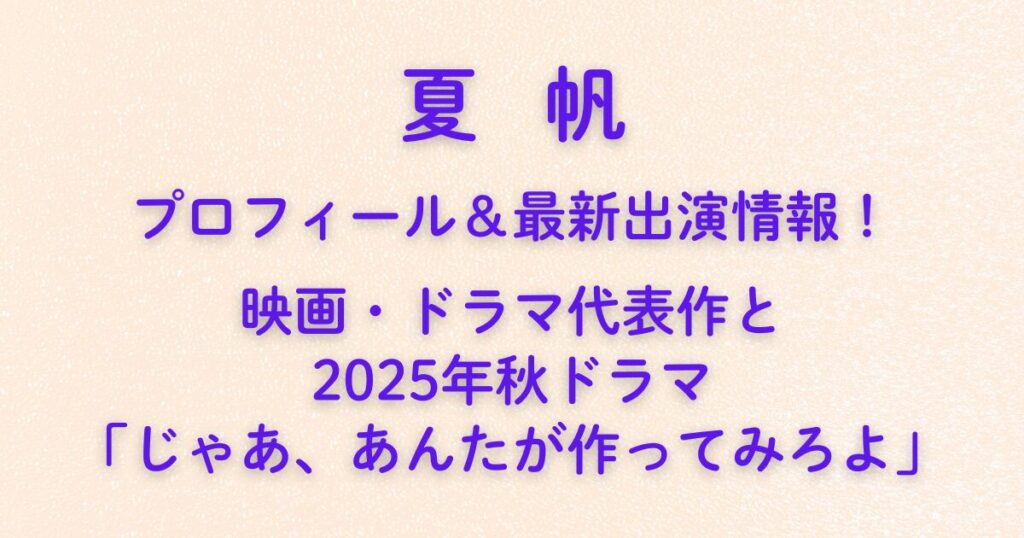 夏帆プロフィール&最新出演情報|映画・ドラマ代表作と2025年秋ドラマ「じゃあ、あんたが作ってみろよ」紹介!!