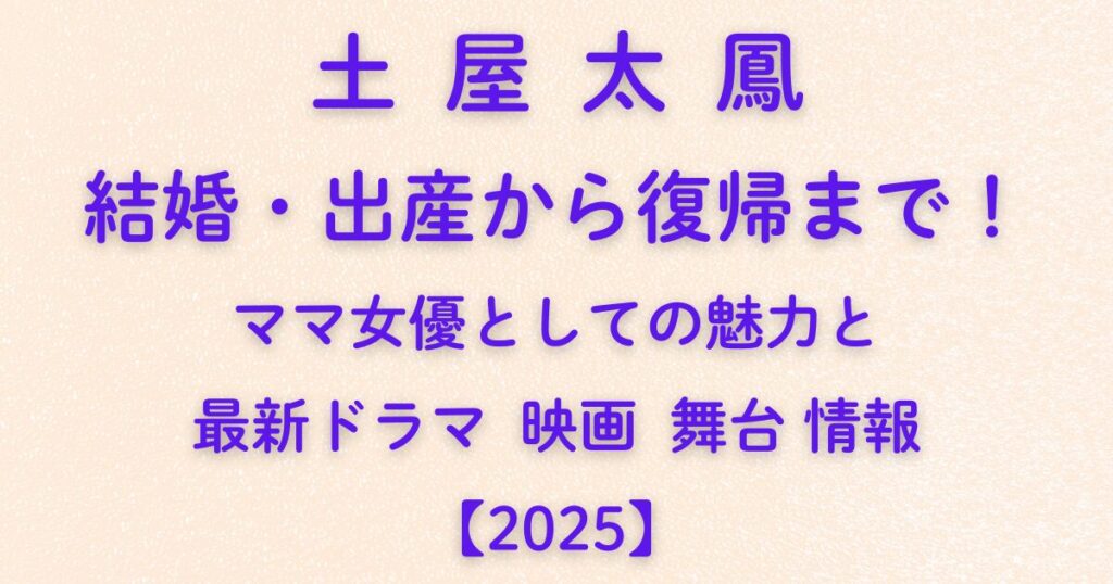 土屋太鳳 結婚・出産から復帰まで!ママ女優としての魅力と最新ドラマ映画舞台情報【2025】