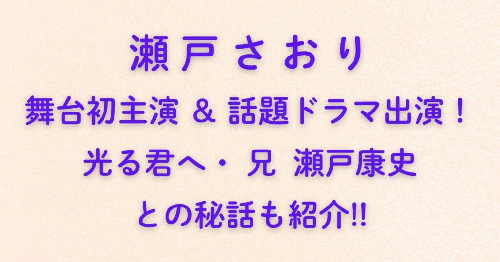 瀬戸さおり 舞台初主演&話題ドラマ出演!光る君へ・兄瀬戸康史との秘話も紹介!!