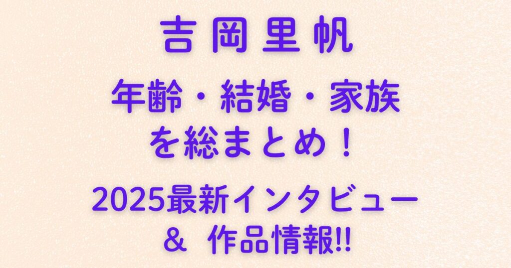 吉岡里帆|年齢・結婚・家族を総まとめ!2025最新インタビュー&作品情報!!
