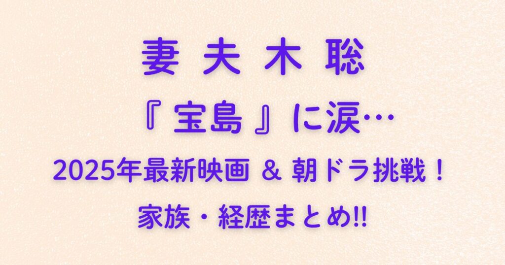 妻夫木聡『宝島』に涙…2025年最新映画&朝ドラ挑戦!家族・経歴まとめ!!