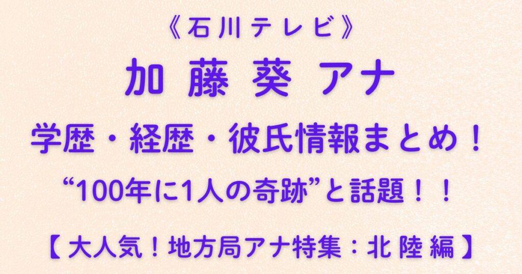 《石川テレビ》加藤葵アナの学歴・経歴・彼氏情報まとめ!“100年に1人の奇跡”と話題!!【 大人気!地方局アナ特集:北陸編 】