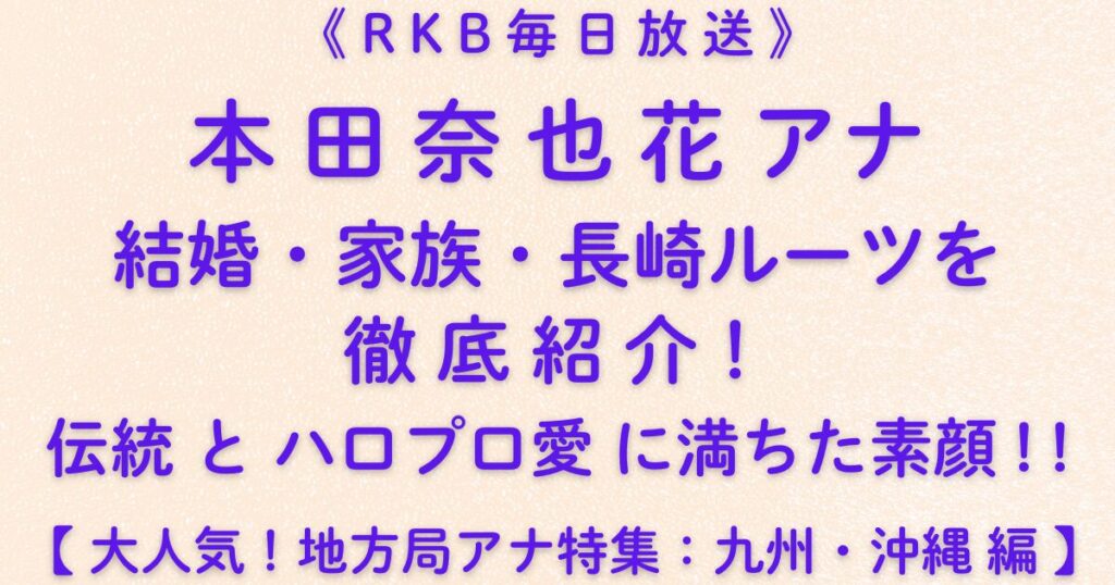 【RKB毎日放送】本田奈也花アナ|結婚・家族・長崎ルーツを徹底紹介!伝統とハロプロ愛に満ちた素顔!!【 大人気!地方局アナ特集:九州・沖縄編 】