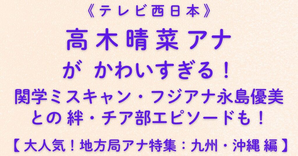 《テレビ西日本》高木晴菜アナがかわいすぎる!関学ミスキャン・フジアナ永島優美との絆・チア部エピソードも!【 大人気!地方局アナ特集:九州・沖縄編 】