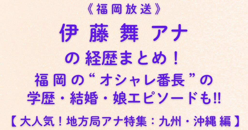 《福岡放送》伊藤舞アナの経歴まとめ!福岡の“オシャレ番長”の学歴・結婚・娘エピソードも!!【 大人気!地方局アナ特集:九州・沖縄編 】
