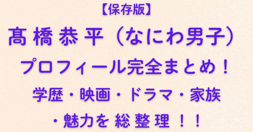 【保存版】髙橋恭平(なにわ男子)プロフィール完全まとめ!学歴・映画・ドラマ・家族・魅力を総整理!!