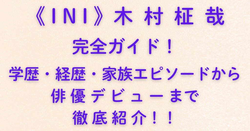 《INI》木村柾哉 完全ガイド!学歴・経歴・家族エピソードから俳優デビューまで徹底紹介!!
