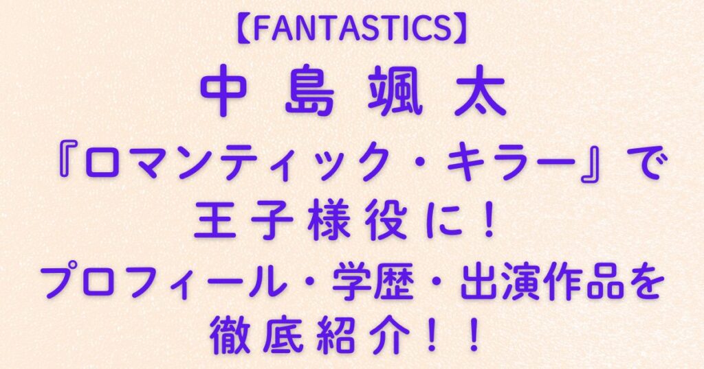 【FANTASTICS】中島颯太が『ロマンティック・キラー』で王子様役に!プロフィール・学歴・出演作品を徹底紹介!!
