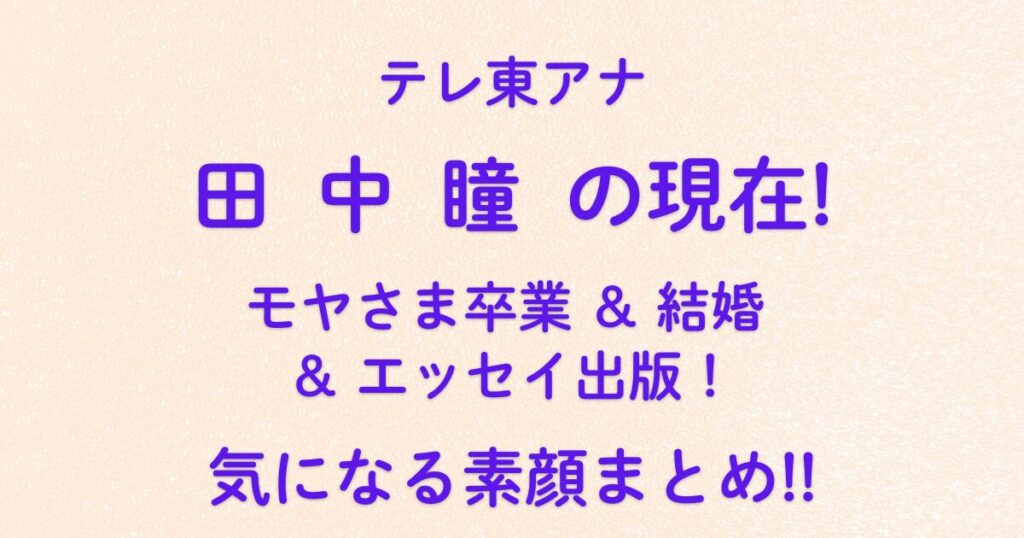 テレ東アナ・田中瞳の現在 モヤさま卒業&結婚&エッセイ出版!気になる素顔まとめ!!