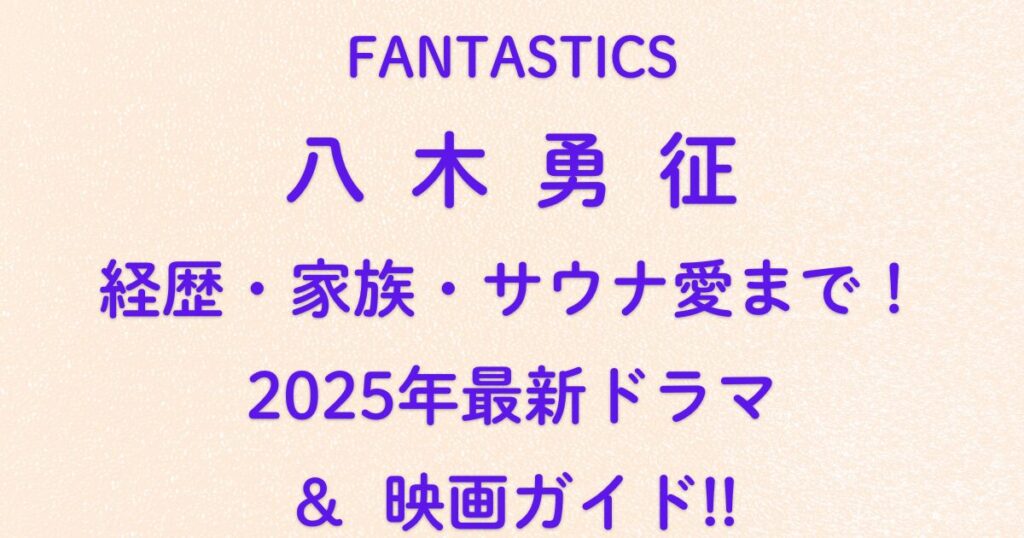 FANTASTICS八木勇征|経歴・家族・サウナ愛まで!2025年最新ドラマ&映画ガイド!!