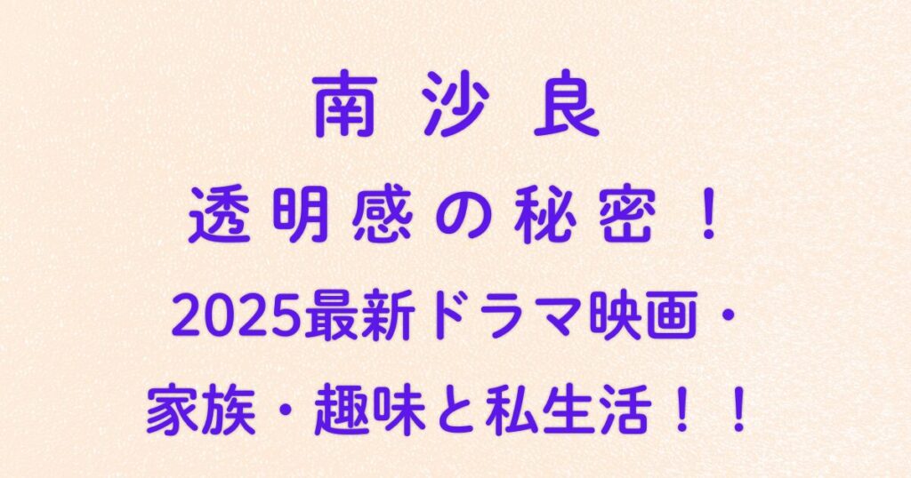 南沙良の透明感の秘密!2025最新ドラマ映画・家族・趣味と私生活!!
