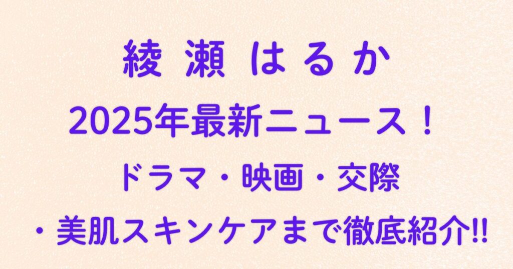 綾瀬はるか2025年最新ニュース!ドラマ・映画・交際・美肌スキンケアまで徹底紹介!!