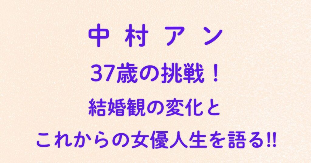 中村アン37歳の挑戦!結婚観の変化とこれからの女優人生を語る!!