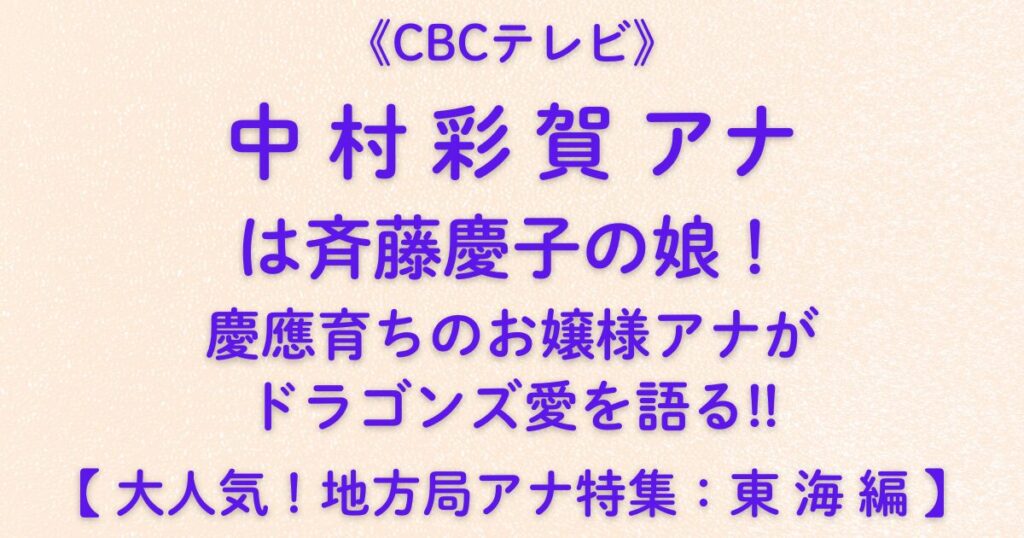 《CBCテレビ》中村彩賀アナは斉藤慶子の娘!慶應育ちのお嬢様アナがドラゴンズ愛を語る!!【 大人気!地方局アナ特集:東 海 編 】