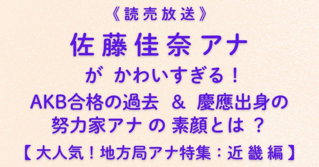《読売テレビ》佐藤佳奈アナがかわいすぎる!AKB合格の過去&慶應出身の努力家アナの素顔とは?【 大人気!地方局アナ特集:近 畿 編 】