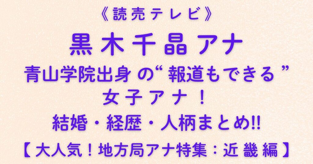 《読売テレビ》黒木千晶アナ|青山学院出身の“報道もできる”女子アナ!結婚・経歴・人柄まとめ!!【 大人気!地方局アナ特集:近 畿 編 】