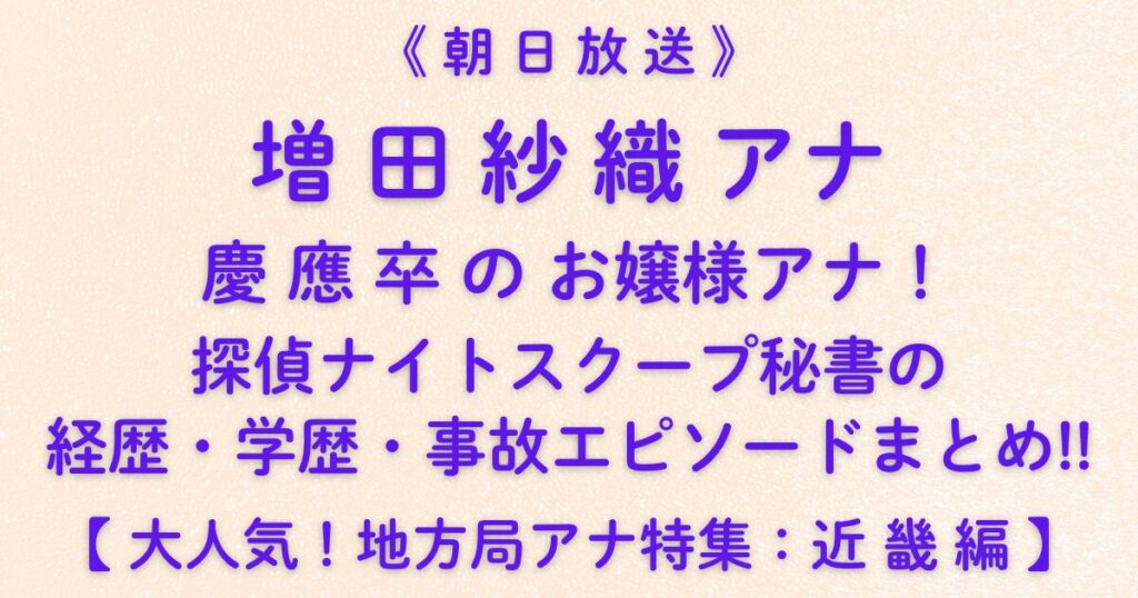 《朝日放送》増田紗織アナ|慶應卒のお嬢様アナ!探偵ナイトスクープ秘書の経歴・学歴・事故エピソードまとめ!!【 大人気!地方局アナ特集:近 畿 編 】
