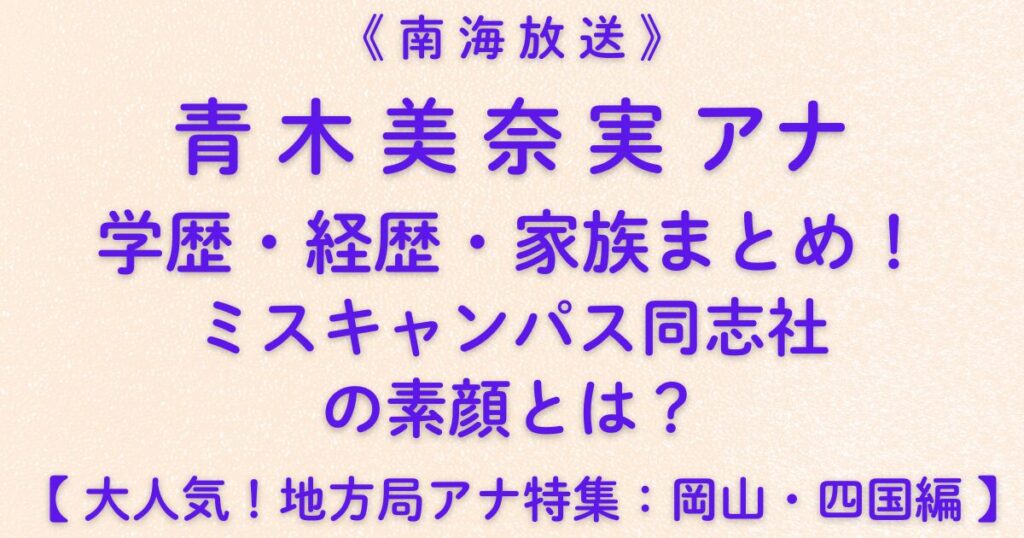 《南海放送》青木美奈実アナの学歴・経歴・家族まとめ!ミスキャンパス同志社の素顔とは?【 大人気!地方局アナ特集:岡山・四国編 】