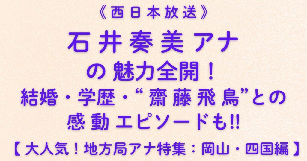 《西日本放送》石井奏美アナの魅力全開!結婚・学歴・齋藤飛鳥との感動エピソードも!!【 大人気!地方局アナ特集:岡山・四国編 】