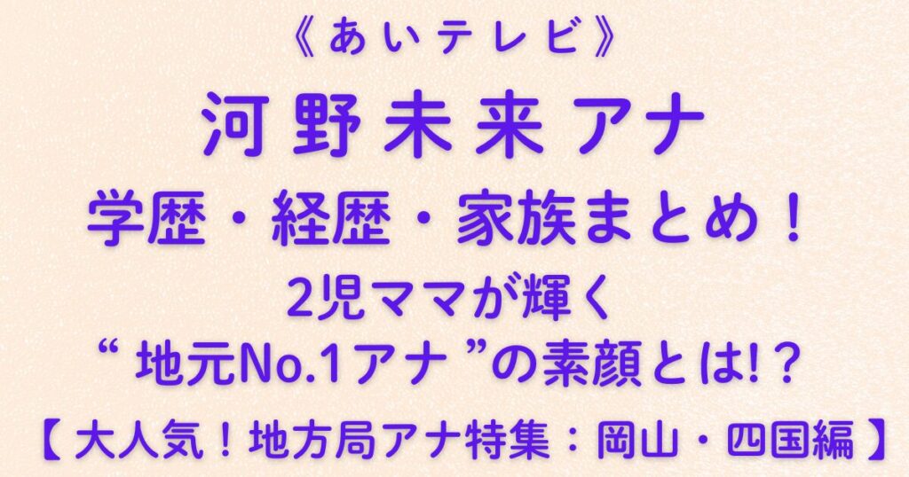 《あいテレビ》河野未来アナの学歴・経歴・家族まとめ!2児ママが輝く“地元No.1アナ”の素顔とは!?【 大人気!地方局アナ特集:岡山・四国編 】