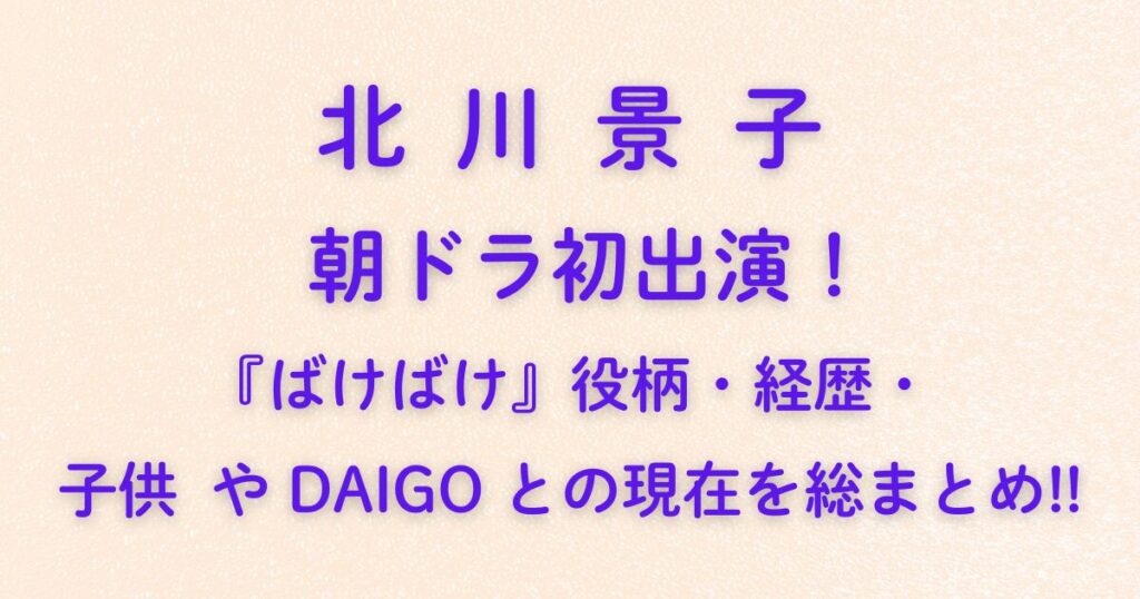 北川景子が朝ドラ初出演!『ばけばけ』役柄・経歴・子供やDAIGOとの現在を総まとめ!!