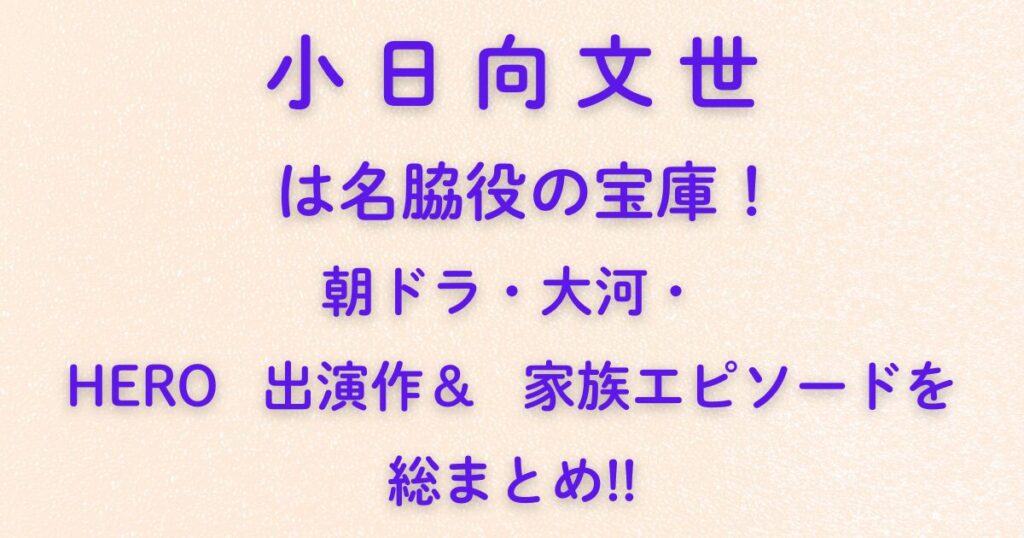 小日向文世は名脇役の宝庫!朝ドラ・大河・HERO出演作&家族エピソードを総まとめ!!
