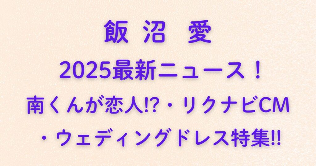 飯 沼 愛 2025最新ニュース!南くんが恋人!?・リクナビCM・ウェディングドレス特集!!