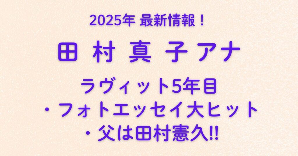 2025年版・田村真子アナ最新情報!ラヴィット5年目・フォトエッセイ大ヒット・父は田村憲久!!