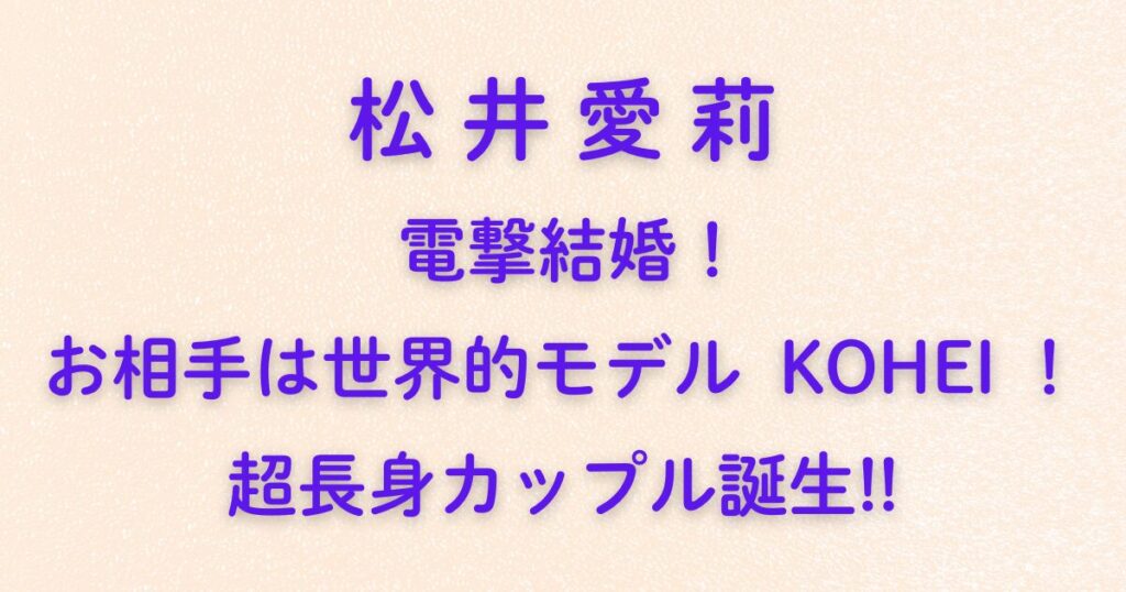 松井愛莉が電撃結婚!お相手は世界的モデルKOHEI !超長身カップル誕生!!