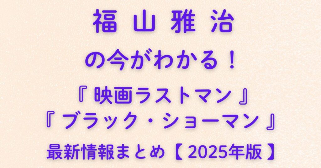 福山雅治の今がわかる!『映画ラストマン』『ブラック・ショーマン』最新情報まとめ【2025年版】