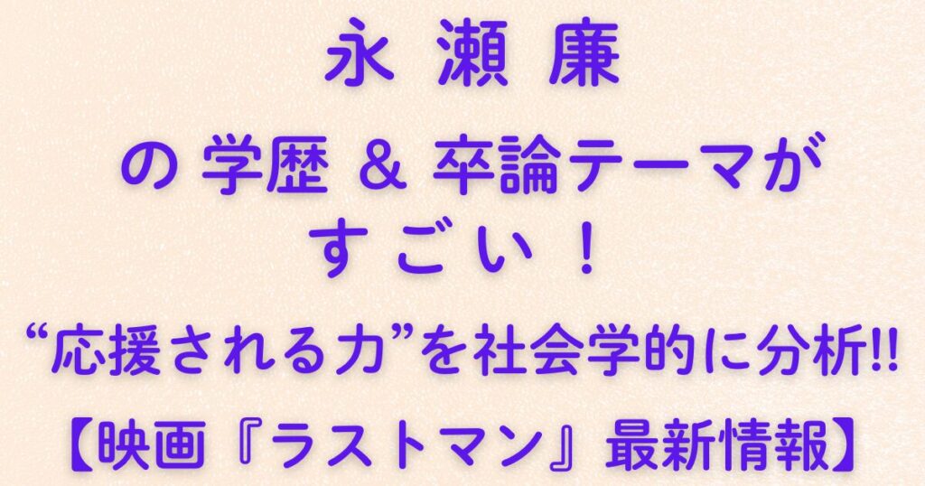 🎓永瀬廉の学歴&卒論テーマがすごい!“応援される力”を社会学的に分析!!【映画『ラストマン』最新情報】